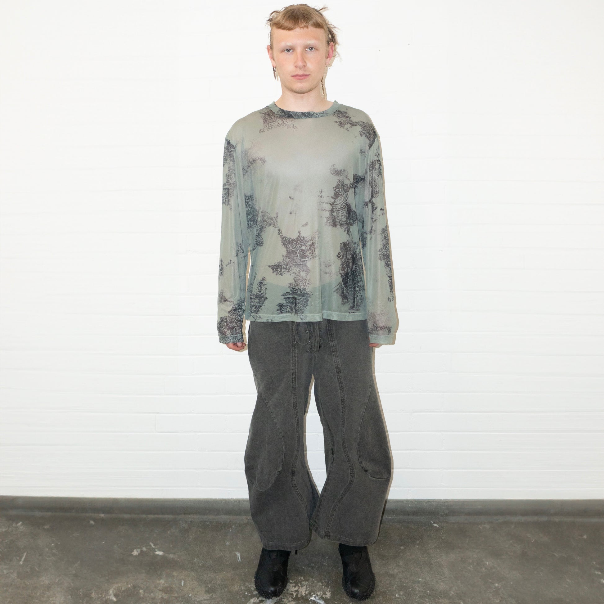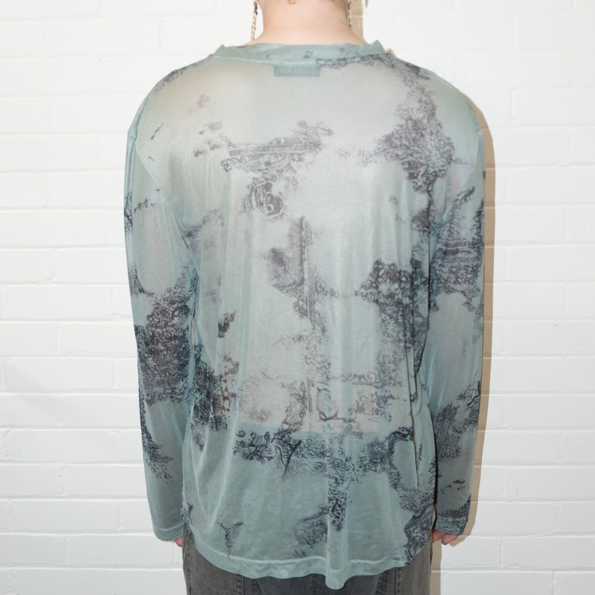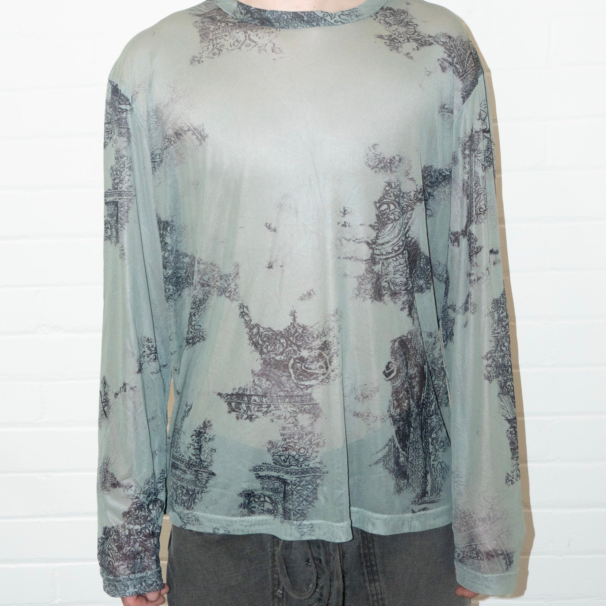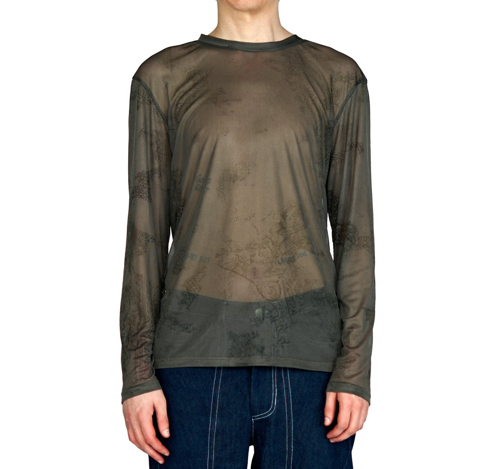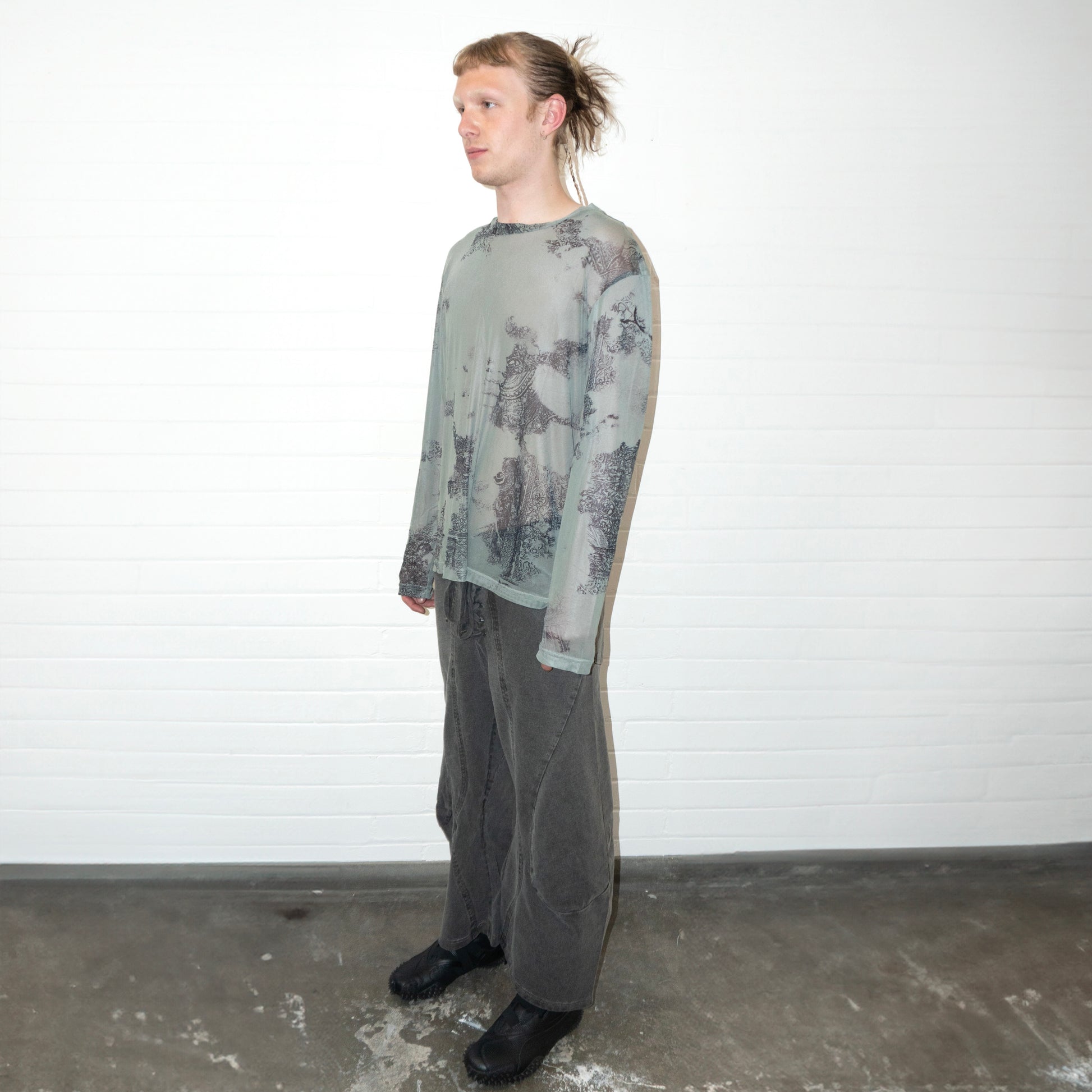 Ben Mesh Long Sleeve Dark Moss shirt is made with breathable mesh and durable polyester, this loose fitting shirt features a unique printed design.