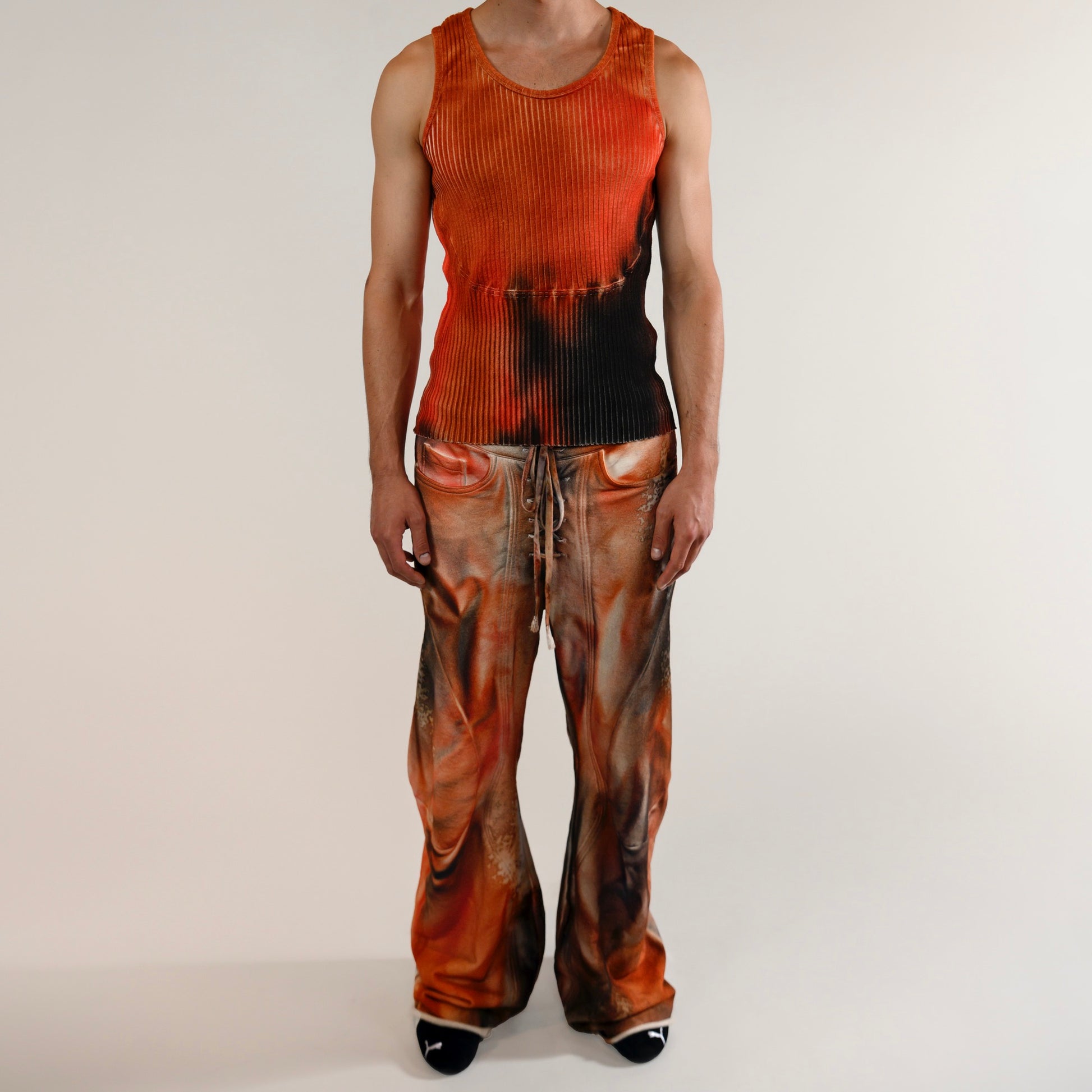 These Blacksmith Jogger Orange feature an airbrushed design with brown and orange variations, and are hand-crafted from 100% cotton.