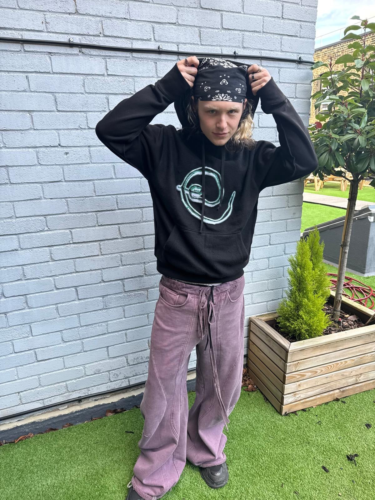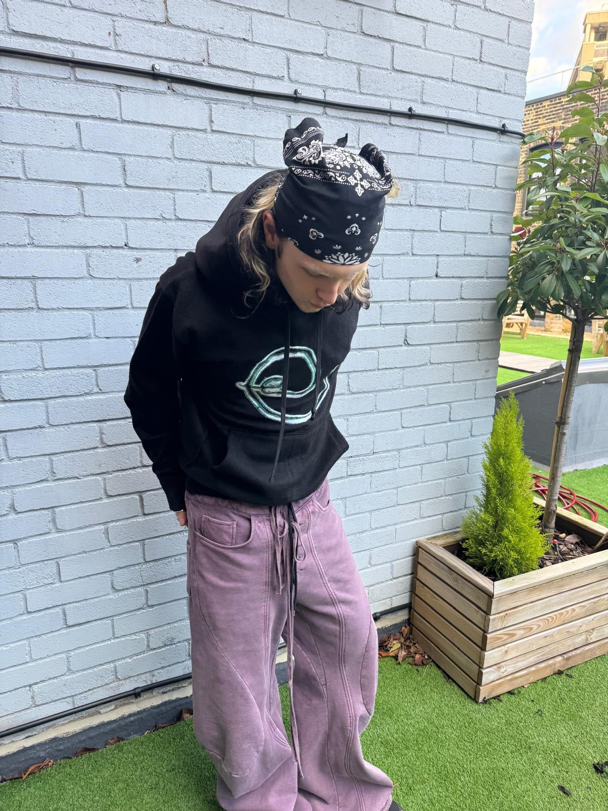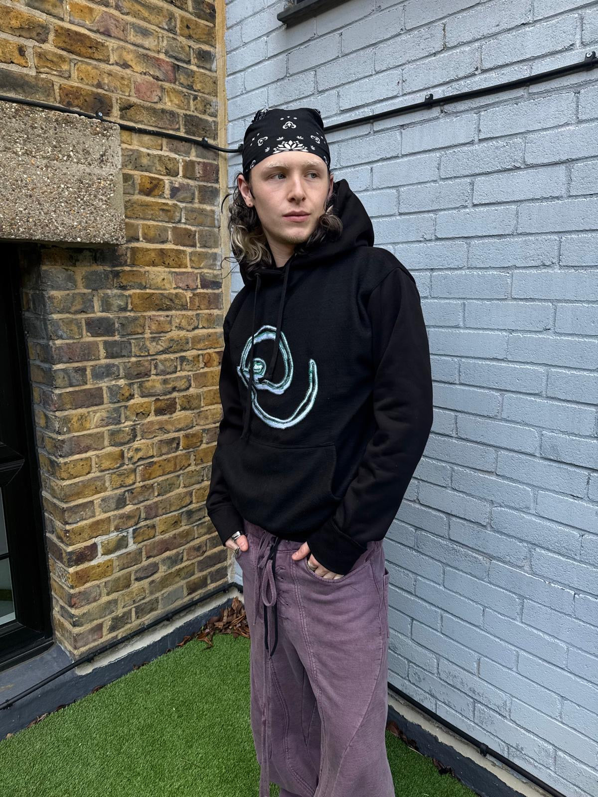 Elevate your style with our Embroidered Spiral Hoodie in Black! The extreme big hood and regular length provide ultimate comfort, while the curved side seam and cuffs add a touch of style. The spiral embroidery on the front makes a bold statement. Stay warm and trendy with this must-have hoodie.