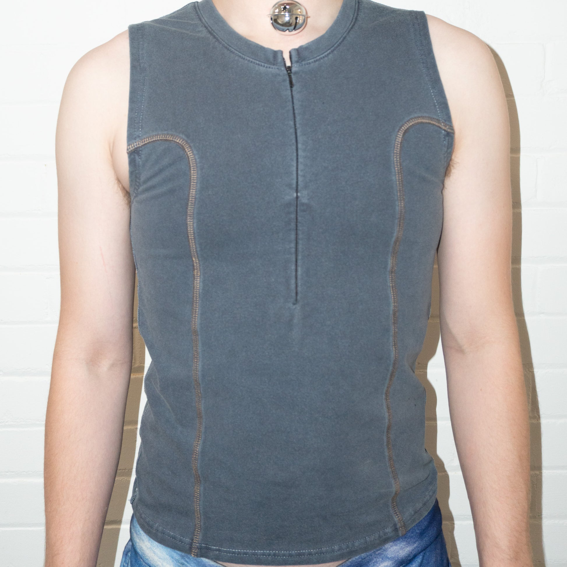 Our Prince Tank in Blue is made from a soft blend of 70% cotton and 30 % polyester, this tank features a unique red contrast stitch and a convenient zip up neckline.